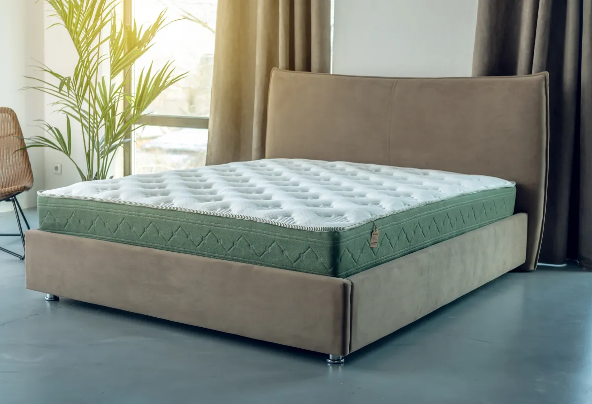 Габаритные размеры кровати тщательно продуманы для максимального удобства: высота изголовья 1130 мм и глубина 2180 мм. Просвет над полом составляет 55 мм, а заглубление матраса - 65 мм, что позволяет использовать матрасы различной высоты без ограничений. Высота по краю царги равна 335 мм, что обеспечивает удобный доступ к спальному месту. Обратная сторона изголовья выполнена из основной ткани, а само изголовье имеет наполнение в виде пружинного блока "змейка", обеспечивающего дополнительный комфорт и мягкость. Эти характеристики делают кровать идеальным выбором для тех, кто ценит сочетание стиля, комфорта и функциональности в интерьере.