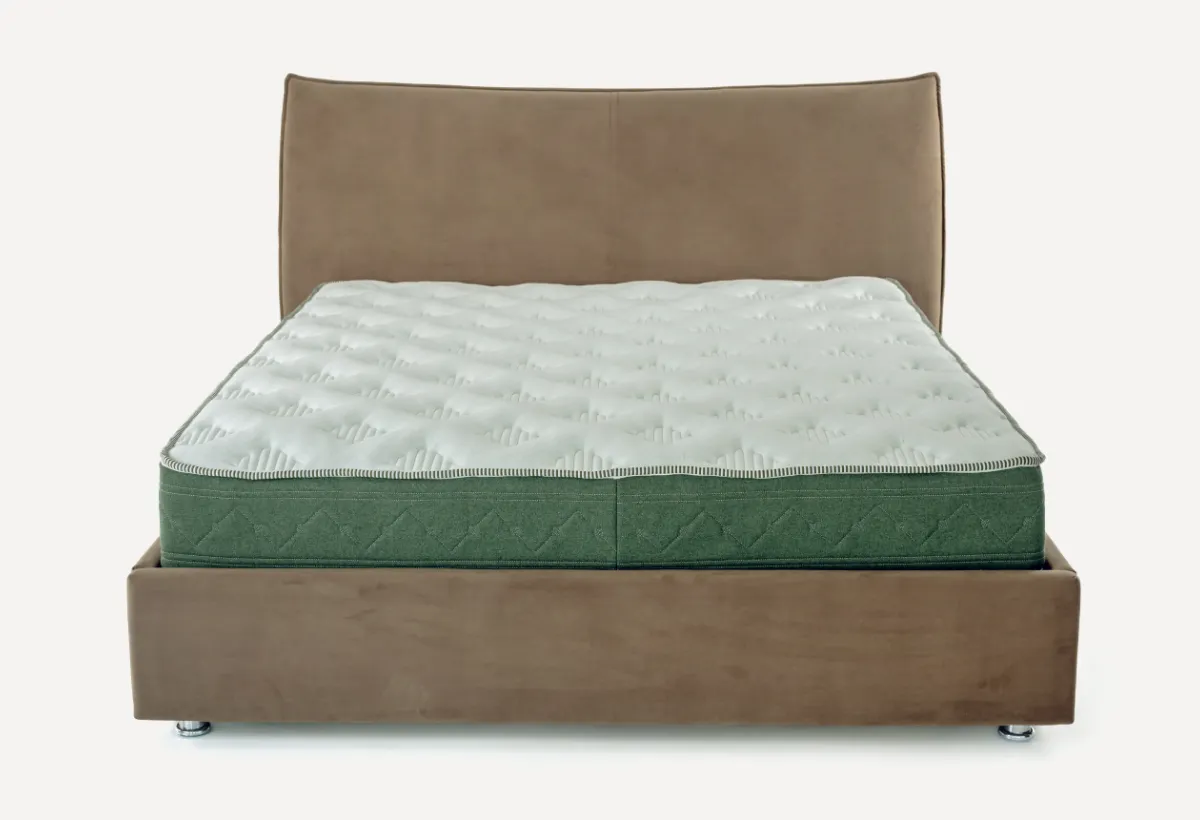 Кровать сочетает в себе современный стиль и продуманные детали, создавая гармоничное сочетание комфорта и эстетики. Изголовье в форме "подушки" с плавными изгибами и акцентными уголками придает кровати уникальный и изящный вид. Деликатный кант подчеркивает изящные формы изголовья, а декоративная строчка по центру повторяет его объем, добавляя визуальной привлекательности. Все соединения выполнены с использованием болтов, что обеспечивает надежность и долговечность конструкции. Металлические опоры с покрытием "черный муар" и высотой 60 мм придают кровати устойчивость и стильный вид.
